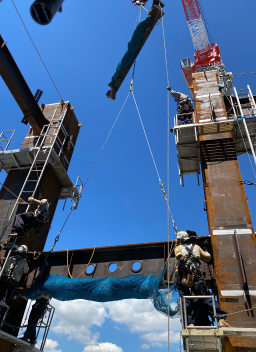 ビルやマンションなどの鉄骨造の建物を建設する際に、重い鉄骨をクレーンで高所に運び、骨組みとなる鉄骨を組み立てます。 資材を繋ぐには、ボルトで固定したり、溶接をおこなったり、資材についている凹凸に引っかけて組み立てたりという方法があります。 仮設足場工事・鉄骨工事 のどちらも、建設業の先鋒といっても過言ではない、誇りをもって取り組める工事です。